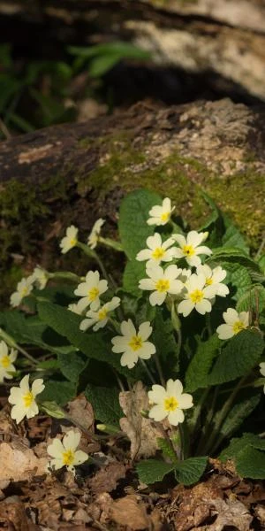 The Common Primrose is one of the first signs of spring. It produces its pale yellow scented flowers over a rosette of oval, deeply veined green leaves.Â